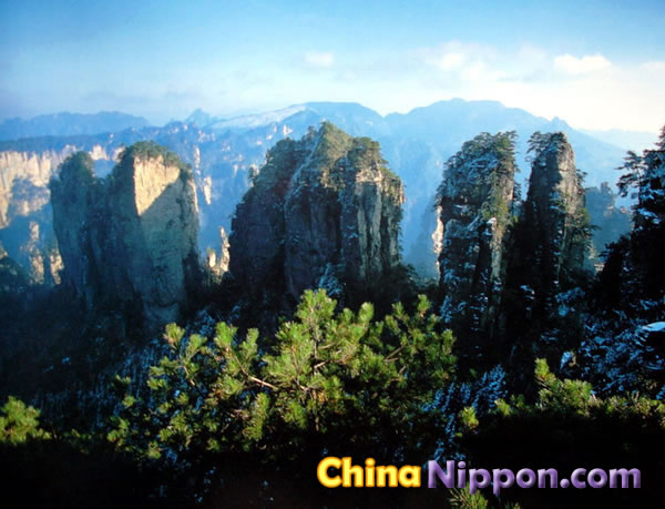 張家界国家森林公園は、1982年に国務院により批准された中国で初めての国家森林公園です。張家界市の北部約32キロにあり、年間の平均温度は16℃~17℃位です。張家界には渓谷や屋根沿いにいくつもの遊歩道があり、渓谷でのんびりと風景を観賞するのに最適です。張家界国家森林公園は、黄石寨と金鞭渓二つの風景区からなっています。
