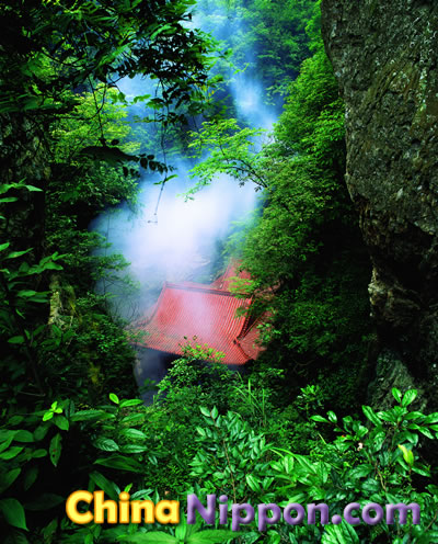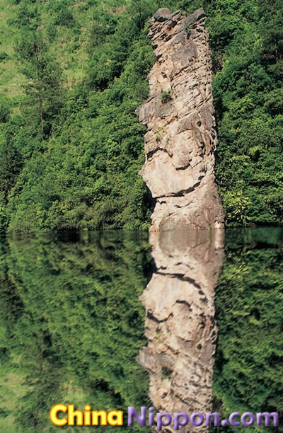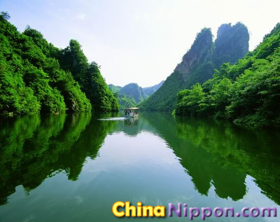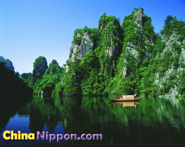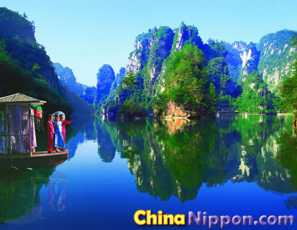 宝峰湖の青々とした湖水は澄んでいて、湖面は鏡のようです。時折そよぐ風に、さざなみ立ち込めます。数組のオシドリカップルが、そんな湖面で悠々と遊んでいます。宝峰湖に船を浮かべ、静かな自然や山水画の世界が湖上から味わいます。