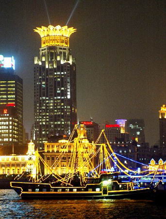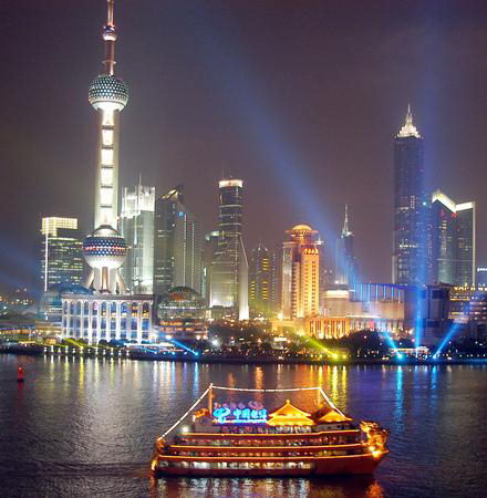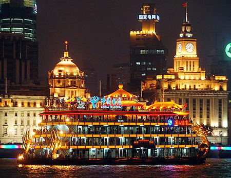 黄浦江は上海西端の淀山湖から流れ出て、呉淞で揚子江と合流する全長約84キロメートルの川である。このうちバンドの南、16鋪乗船場から呉淞口またの約30キロメートルを遊覧船が毎日往復しております。所要時間は約3時間30分です。ここは黄浦江、揚子江、東海の3種類の水がぶつかるところです。水の色はそれぞれの違いを見せ、周りの縹渺とした景観が見える、黄浦江は下流部数十キロメートルが幅約400メートルの中国最大の貿易港となっております。そのため港を行き交う客船、軍濫、貨物船、何隻もされた運搬船、手漕ぎの船や筏など実に多くの船をまじかに眺ることができます。 外灘と浦東新区の美しい夜景を眺められる黄浦江クルーズ。もっとも上海らしい輝きを見せる、ライトアップされた幻想的な光景は誰しもが感動し、誰もに体験してもらいたいもの。出航後まもはく西岸に、エキゾチックなバント、東岸には東方明珠テレビ塔をはじめ、浦東の新聞発地域を見学します。これを見ずしては上海から帰れません。コースは1時間ぐらい。800人収容可能な巨大クルーズ船もある。船には売店とレストランがあり、飲み物と食事は別料金となる。グレードの高い遊覧船に揺られながら観る上海の夜景は、地上で見るよりさらに印象深いものになるでしょう。