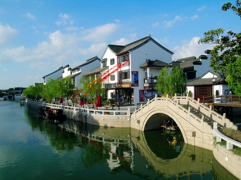 周庄周庄は上海と蘇州の間に位置して、蘇州から約38キロメートル、上海から約80キロメートルであり、中国有名な画家の呉冠中は周庄の美しさを「中国水郷の綺麗さを納める」と賛美しました、海外の新聞は「周庄が中国第一の水郷である」とも賛美しております。 周庄は約9百年の歴史を持っていて、豊富な文化の含みもあり、西晋の文学者の張翰、唐代の詩人の劉禹錫、陸亀蒙などの歴代名人がここに住んだことがある。周庄も元末明初の江南の巨富の沈万三の故郷である;周庄は典型的な江南水鎮なので、ここで撮影する各種の映画とドラマは40数冊がある。橋、川、小屋が水郷の特色で、周庄の河川は「井」の字形になっており、町の中から横切って、“咫尺の往来も全て船”,誰の家でも埠頭がある。周庄のアーチ型の古石橋:富安橋(1355年)、貞豊橋(13世紀中叶)、太平橋(1522-1566年)、双橋(世德橋、永安橋)(1573-1679年)、全功橋(1646年)、福洪橋(16世紀中叶)、普慶橋(1726年)、通秀橋(1774年)、梯曇橋(1764年)、隆興橋1464-1487年(1994年再建)、報恩橋1711年(1993年再建)、蜆園橋(1993年再建)、青龍橋(1993年再建) 同里 蘇州から18キロメートル、上海から80キロメートルにある水郷の町、周庄、用直、烏鎮、西塘、南潯と並び、中国江南6大水郷と讃えられる。街は宋代から発展を遂げ、元、明代には江南地方の中でも大きな村のひとつとなった。街には1000年近い歴史を持つ石橋なども残っており、水路と住居が一体となった古い町並びは、江南の特徴を持つ、映画のロケ地としてもよく使われている。 同里で最も有名なのが退思園である、清の時代に作られた庭園形式の邸宅です。本園は池を中心に、楼閣や回廊がそれを取り巻くように立てられていて、水上に浮かんでいるように見えるため、貼水園とも呼ばれている。このほかに、同里二堂「嘉蔭堂、崇本堂」、同里三橋「太平橋、吉利橋、長慶橋」もすばらしい見所である。 用直蘇州から18キロメートル、上海から58キロメートルにある水郷の町、周庄、同里、烏鎮、西塘、南潯と並び、中国江南6大水郷と讃えられる。2500年以上の歴史を持つ古い街であり、1300年の銀杏の木も街の長い歴史を物語っている、水路が迷路のように巡り、その水路の上には72の石橋がかかっている。街全体が昔の面影を現在に伝えており、街中をぶらぶら歩いてみましょう。このほかには保聖寺という名刹がある。本院は503年に創建された江南で有名な寺院のひとつ。明の時代末に立てられた天王殿の後ろにある古物館には、宋代につくられた羅漢塑像などが納められている。かなり貴重な文物で、ぜひ行って見ましょう。 烏鎮烏鎮は上海市と杭州市の中間あたりに位置する水郷、京杭大運河はここを通り流れています、鎮の南北に「市河」が流れ、鎮内に水路網が広がって、支流縦横に;千百年以来、民家は河のそばに建てられて、 モデルの江南の水郷の風情を形成されている。「東市河」一帯が最も昔の面影を残している所で、烏鎮観光の中心となっている。烏鎮が古来よりにぎやかであり、民間の風俗も質朴で、花鼓劇、影絵芝居などの独特な民俗風情が濃厚な水郷の雰囲気を体現している。ここは美しい自然環境があり、人材も次々と出る、梁昭明太子がここに館を建って本を呼ぶから、近代有名な文学者の茅盾まで、おおい文人と有名な古跡を残されました。もし舟に乗ってここを巡って、烏鎮静かな雰囲気を感じて、江南の水郷の美しさも感じられます。 民俗間、江南百床館、江南木彫陳列館など、江南の伝統文化がよく理解できる博物館も点在している、一見の価値がある。西塘西塘鎮は上海市と浙江省の境に位置している、ほかの水郷古鎮が大規模な観光開発されているのに対して、ここは昔ながらの状態を残っている。最も特色あるのが川沿いの道は全部屋根があり、日照強いときでも雨のときでも端から端までゆっくりと散策できます、100年前の面影を色濃く残す水郷を歩いていると、はじめて来たのにとても懐かしい感じがしてくる。ホテルもあるので宿泊してみれば、特別な江南体験になります。 南潯南潯は浙江省歴史文化の名鎮であり、湖州市に位置して、江蘇省呉江県の辺境を接して、面積は34平方キロメートルで、人口は約5万人で、1991年、南潯は浙江省の歴史文化名鎮の一番と表彰されております。南潯水郷の風光は美しく、嘉業堂の蔵書閣、劉氏小蓮庄、張氏適園などが現存する古典の庭園がある。元代石獅、清朝の石牌坊、古塔はおよび天下の奇石「美人照鏡」という石、鷹石があり、昔の風采を展示されている。諺により「上に極楽があり、下に蘇州と杭州があり、中間は南潯である」ことを讃えられている。南潯へ旅行すれば、江南水郷、名士の故郷、豊かな絹織物など、心を浄化するでしょう。