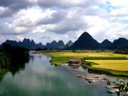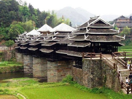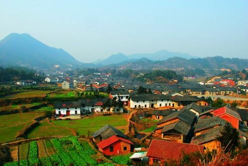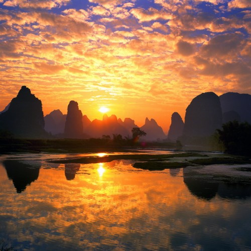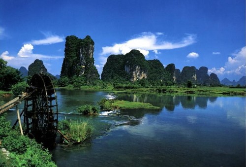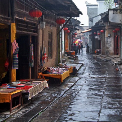 桂林南東部の郊外に位置し、桂林から約18キロ。明の時代から続く広西省の四大古鎮の一つです。既に 500年以上の歴史を持っており、古鎮に数多く残された民族特色溢れる古い建築物が、その歴史を物語っています。町の南に400年前に建てられた単径間の石橋-万寿橋があり、町の東南には滝があります。また、その漓江を挟んだ対岸の"茅州島"は、木々が生い茂り、とても美しく、リゾート地となっています。大墟周辺の畑は春になると苺狩りのスポットとして有名です。