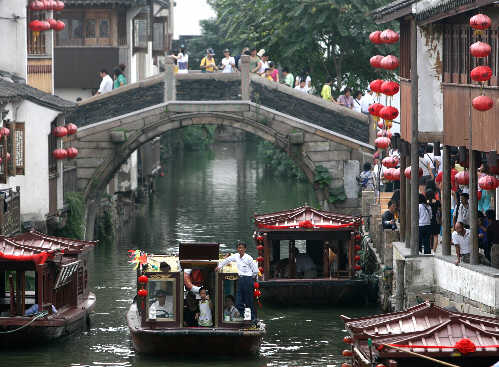 周庄は中国第一の水郷と称され、世界文化遺産登録の申請をしている。蘇州の東南、上海との境にある、田園の中の水郷だ。四方を湖に囲まれ、以前往来は大半が船だった。