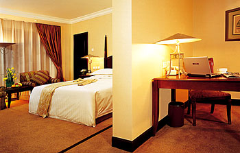 大小の宴会から展示会、国際会議等多目的に利用できるホールを有し、多様な要望に応じられるビジネス、センターもある。客室はピンク色を基調としたヨーロピアン、スタイル。1995年に中国のベスト50ホテルに選ばれている。日本語ホットライン有り。  906室全ての客室にCNNやNHKチャンネルも見られるカラーテレビ、ミニバー、冷蔵庫、IDD電話、セーフティボックスを完備。その他、テニスコート、サウナ、プール、カラオケ、洋服や靴、本や雑誌、薬、ワインや中国の漢方薬などのショッピングができる8つのお店など、施設も充実。