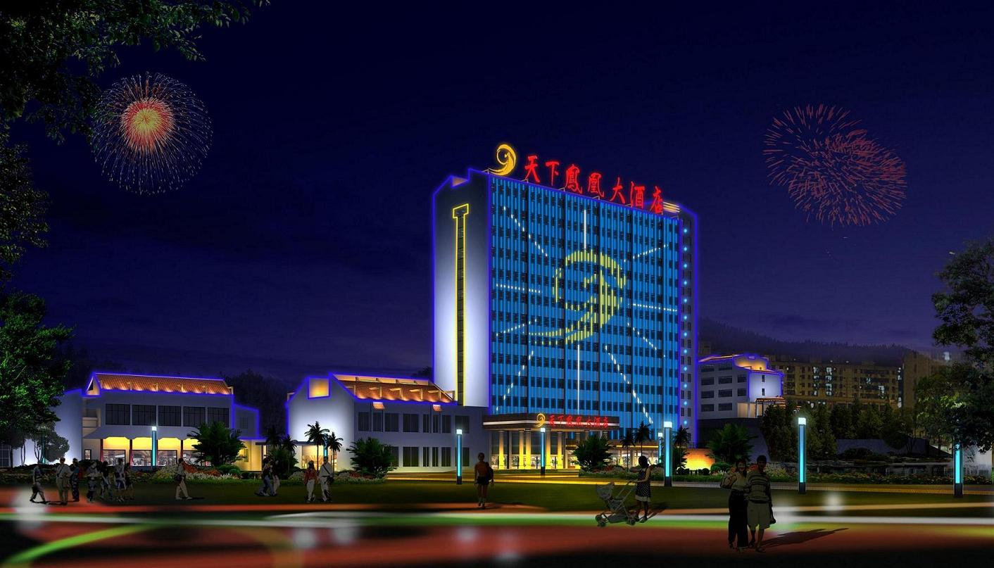 天下鳳凰大酒店は国家歴史文化名城―鳳凰古城の中に位置し、銅仁空港まで34キロ、吉首駅まで52キロで、交通は非常に便利である。 当ホテルの敷地面積は7万平米、山により立てられ、庭園式の建築風で、回廊や亭などがたくさんあり、泊まり心地は非常によいである。 プレジデントシートルーム、デラックスシートルーム、ビジネスシートルーム、スタンダードルームなど、合計488室があり、インタネット無料でご使用でき、設備はすべて完備しております。 中華料理店、湖南風味、広東料理も得意である。サウナ、美容室、ジム、カラーオーケー、多機能国際会議室などの設備も揃い、最善のサービスをご提供させて頂きます.